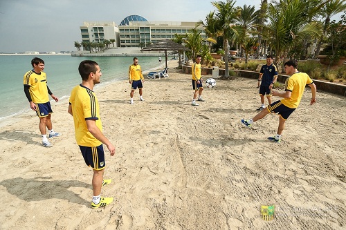metalist.ua Второй день на сборах в ОАЭ встретил харьковчан переменной облачностью и отличной, по футбольным меркам, температурой около 20 градусов. Первую часть занятия сегодня ребята провели в тренажерном зале, а затем, как и вчера, отправились на пляж, где совершили пробежку и поиграли мячом через сетку. ![]()