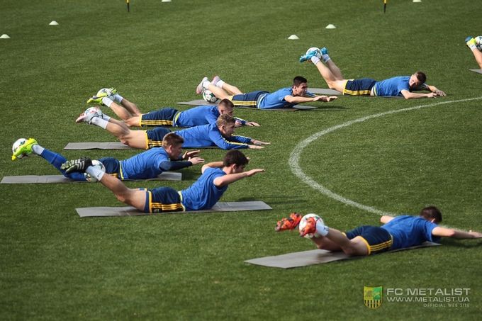 metalist.uaСделав разбор матча с пражской «Дуклой» и указав на негативные и позитивные моменты игры, тренерский штаб подготовил для игроков восстанавливающую утреннюю тренировку. Сначала под руководством Сергея Попова футболисты совершили пробежку вокруг поля и несколько беговых упражнений, затем перешли к упражнениям на стретчинг и завершили тренировку игрой через сетку.