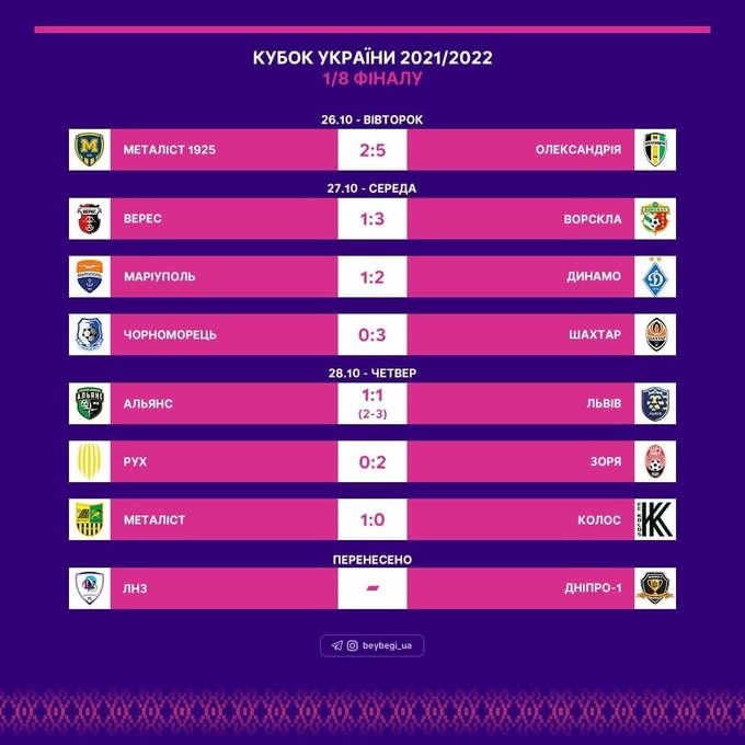 УАФС 26по 28 октября состоялись матчи 1/8финала Кубка Украины.